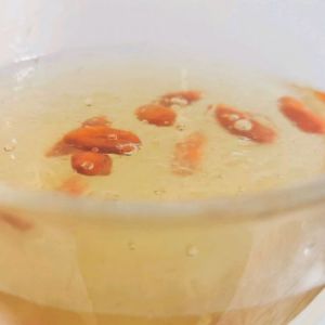 准备好冰糖和枸杞。隔水炖燕窝,这一步忘记拍了。炖四十五分钟后放入冰糖和枸杞再炖十分钟