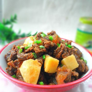 放入鸡粉,烧到牛肉,土豆熟烂即可