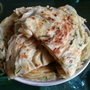 用擀面杖擀成圆面饼。注意用擀面杖不要太用力,千层饼嘛~太用力了,层就没有了哈!