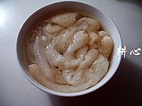 将竹荪浸泡2小时左右,期间不间断更换清水,然后择洗干净,沥干。