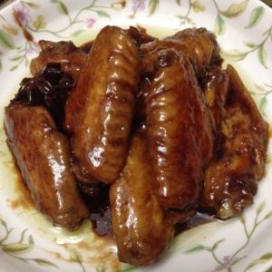 鸡翅洗后沥干,锅里放少许油,不放油也行,将鸡翅煎直两面黄