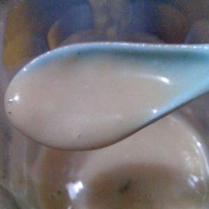 用勺子把炒好的面放到碗里,加少许白糖拌匀,在倒入开水拌成糊糊就可以了。