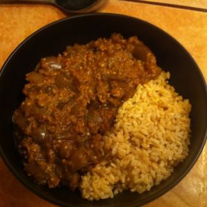 在试尝到自己满意的辣度和味道后,即可出锅。喷香、下饭的鱼香茄子完工!(上图为盖浇饭形态,右边是糙米Brown Rice)