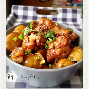 板栗表面划十字刀,入开水煮10分钟,捞出后在冷水中泡3分钟易去皮。剥皮后备用。