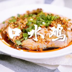 淋到鸡块上,撒葱花、香菜末,麻辣鲜香的口水鸡就做好了。