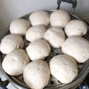 用手揉圆后,放入蒸锅里(底部加适量的水,蒸屉上摸一层油防粘),发酵15~20分钟后,直接拧开火,大火蒸20分钟即可。
