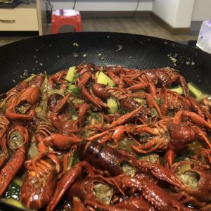 爆香之后放入虾子,放入酱油蚝油鸡精白糖盐适量,然后我是现在放的一点十三香