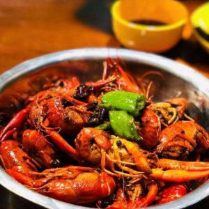倒入白酒煸炒一分钟,下3勺豆瓣酱、20个干辣椒段,30颗花椒煸炒两分钟加入1瓶啤酒、1勺耗油和清水没过龙虾(可以再加入适量喜欢的素菜)大火烧开后加入半勺鸡精和盐,转小火盖上锅盖焖十分钟,再转大火收汁,起锅。