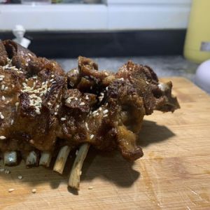 这就是成品辣,我去焦李能的烤羊排,如果觉得羊排膻味太大可以提前把把声羊排永花浇水陪泡一晚