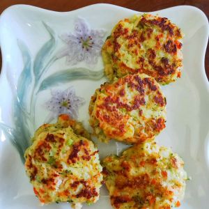 鸡肉去皮剁成泥,虾去壳切小块,胡萝卜西兰花抄水切沫