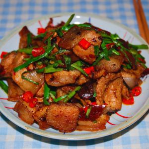 一盘色泽红亮,肥而不腻的回锅肉就做好了。