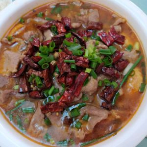 起锅下油,爆香葱姜蒜,下花椒,干辣椒,泡椒,豆瓣酱炒出香味,倒入一大碗水,煮开,放盐,生抽,鸡精,白糖调味,煮几分钟,然后下入配菜,娃娃菜,金针菇,魔芋,豆泡,千张,海带丝都可以,喜欢吃什么就放什么。煮5分钟后把菜捞出来放大碗里,锅里的汤继续烧开,迅速下去肉片,再次煮开即可,全部倒出来。锅洗净后继续开火烧小半碗油,烧至油冒烟关火,迅速洒一把辣椒段和花椒,然后浇到煮好的肉片上去,撒上葱花!