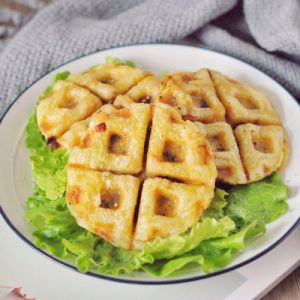 打开汉美驰华夫饼机,放入蛋挞皮,加入牛肉。
