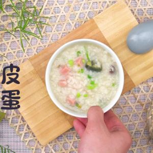 8.依次加入火腿丁、皮蛋丁、盐、胡椒粉、蚝油,搅拌均匀