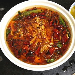 油烧热下姜蒜炒香,再下郫县豆瓣炒香,最后下朝天椒。炒香后加适量清水。煮开后下肉片,煮2分钟后起锅装盘