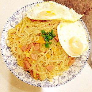 热锅入油,放入葱花炒香,把备好的白菜芯、南瓜、火腿入锅翻炒几下,再放入拌好的面条翻炒,盐、酱油、鸡精适量,出锅前放入少许黑胡椒提味即可(根据个人口味,不放也可以哦)