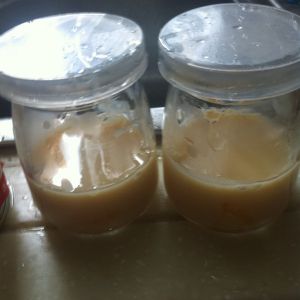 将搅拌均匀的布丁溶液倒入加有果粒的瓶中 加盖 冷藏12小时即可食用