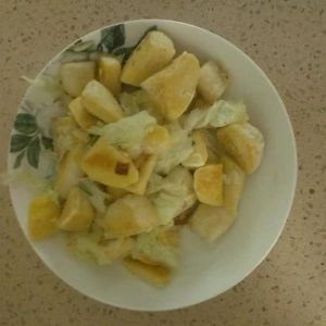 馒头切成小块。如果是冷藏过的馒头,需要蒸一下,保证馒头是软的。