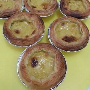 将蛋黄打散加入,搅拌均匀,注入蛋挞皮里,不要满,留四分之一