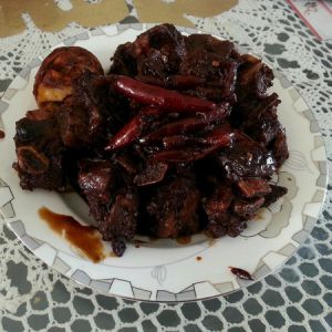 取出排骨,水倒掉,将排骨放入锅中,倒入李锦记红烧汁,按照1:5的比例加水,没过排堝