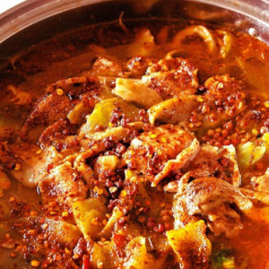 转大火煮沸后下入需要煮的菜品,煮至蔬菜成熟水沸状态入肉片煮30s-60s果断关火装盆撒干辣椒面、花椒粒