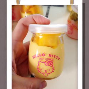 1、将450毫升的沸水(一定要沸水哦)放入35g的奶粉中搅拌均匀,再放入75g的补丁粉搅拌均匀倒入9个布丁杯里,倒一半即可Yeah~ 2、趁还没有冷却时每一杯加入三四块芒果(随个人喜好)待冷却,布丁完全定型后把每一杯装满芒果即可~~~嘿嘿看起来是不是很诱人呀……没有一个小朋友不爱滴哦~