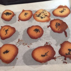 然后将面糊摊成溥饼形(用小勺)撒上芝麻。就OK了。