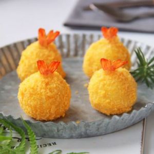 凤尾虾球就做好了,外面的土豆泥香嫩,里面的虾肉鲜美