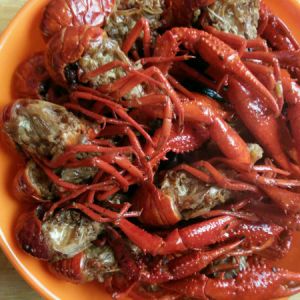 锅烧水,下入小龙虾,煮出浮沫,捞出洗净。