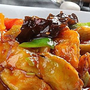 调入适量的香辣酱,生抽,想成色更好的可以加几滴老抽,适量的盐,生粉水(不能太多不然很难收汁),葱。大火烧开后翻炒均匀即可!