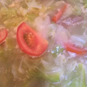 卷心菜和土豆马上快熟了放入切好的西红柿。菜都熟了放味精。尝尝淡不淡,要是淡放盐