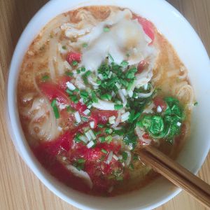 待水沸腾,放一小把挂面,搅拌,然后放一个鸡蛋,煮三分钟