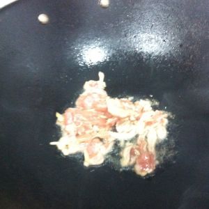 油烧至8成热,将肉丝倒入迅速翻炒至发白,捞出。