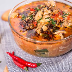 最后把肉片捞出,倒入高汤,撒上少许刀口辣椒、蒜末、蒜苗末,淋上滚油就可以吃啦!