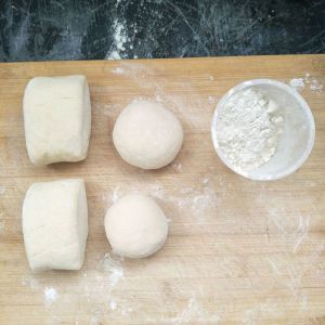 水面差不多融合,加干面揉成团,尽量把小颗粒揉匀