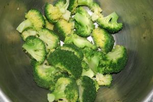 西兰花洗净掰成小朵,用加了盐的开水烫30秒;