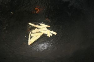 胡萝卜切丝、姜切丝; 起锅热油,小火慢慢爆香;