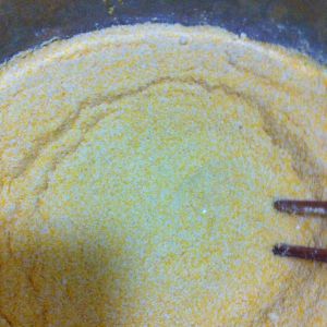 粗玉米面和细玉米面以1:2的比例,以个人爱好加入适量糖备用
