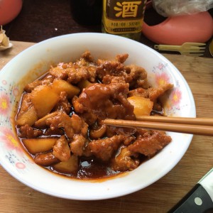 差不多了,倒进炸好的肉和土豆