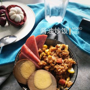 2。米饭稍加老抽一勺,酱油一勺,搅拌,上色