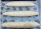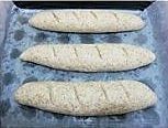 烤箱先进行200度预热,将醒好的面团放入中层,200度,30分钟,至表面金黄。为使烤出的法棒更香脆,可在烤制时下层放一盆水,人造蒸气。