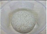 将面团揉到表面光滑,放在27度的室温下,发酵1小时左右,让面团比原先的大到2.5倍左右。(发酵的时候,表面需要加盖保鲜膜或者湿布,防止面团表面干燥)。为了更好的发酵,可放进微波炉或者烤箱等不透风的密封箱。
