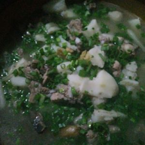 差不多煮开半个小时就可以了,开锅撒入食盐,味精,再加点葱花点缀就好了