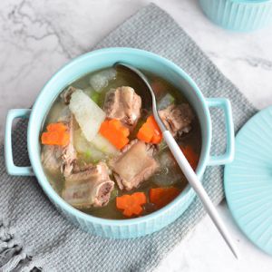 翻炒后的排骨加入适量的清水,如果喜欢喝汤就多放些水,反之就少放些水