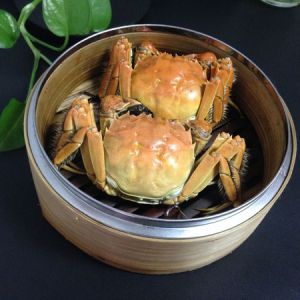 把洗好的大闸蟹反过来放在蒸笼里,然后入上蒸