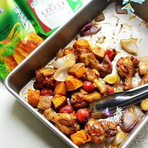 腌好的食材放在烤盘里