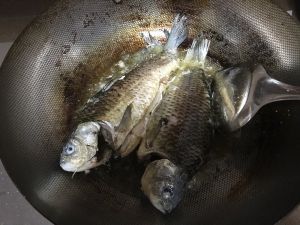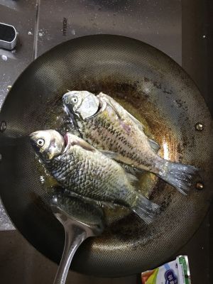 这个也是之前煮的,水收干了的,而且鱼比较小。炸鱼要好炸点。
