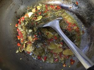 之前准备好的酸菜,泡海椒,小米辣,姜,蒜