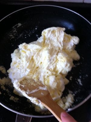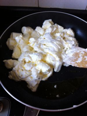 所有材料都准备好后,用平底不粘锅,全程小火,倒入黄油软化,完了照照片了