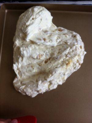 盖上油纸整形,用橡皮刮刀帮忙比较好,整形的高度大概在1.5cm左右